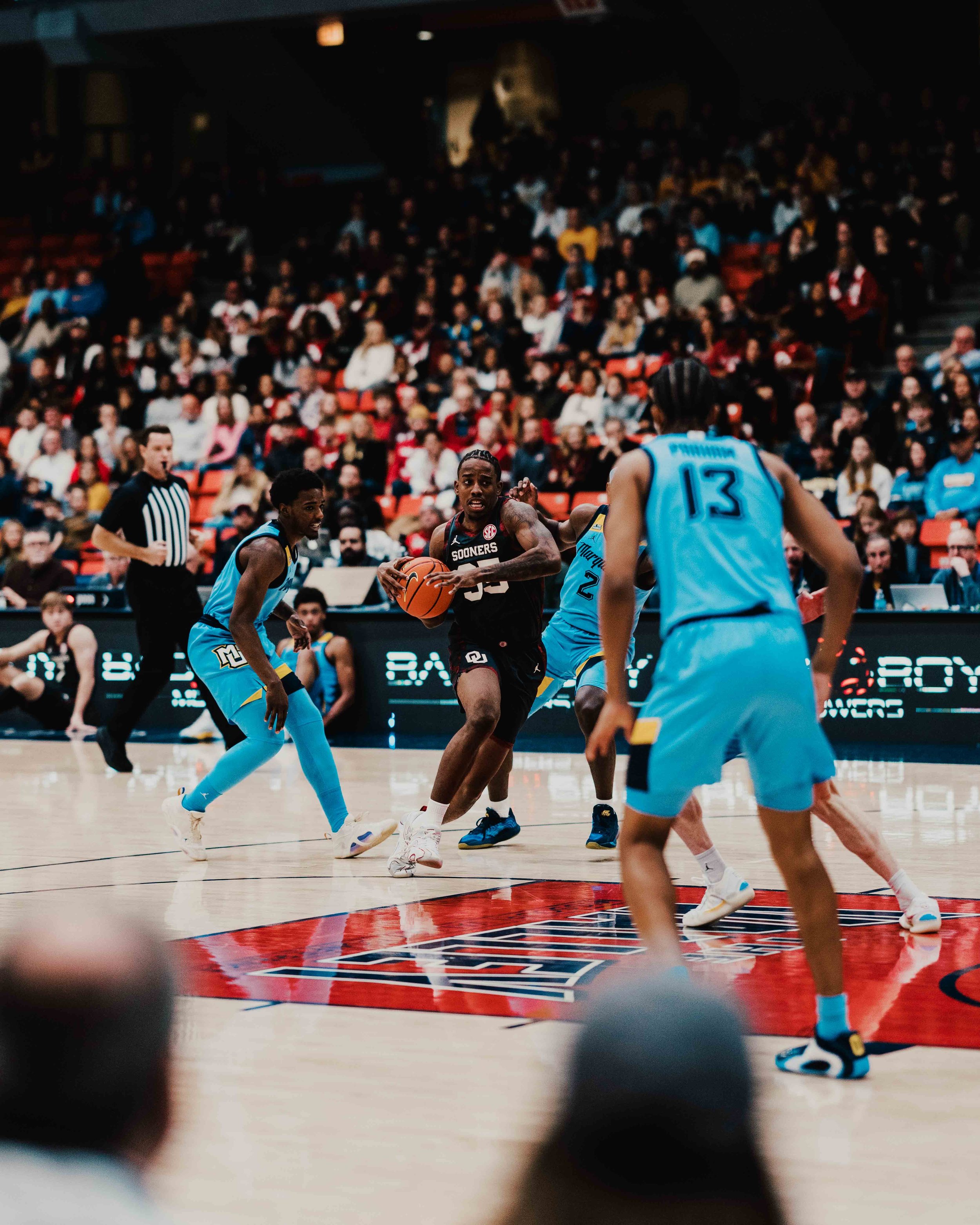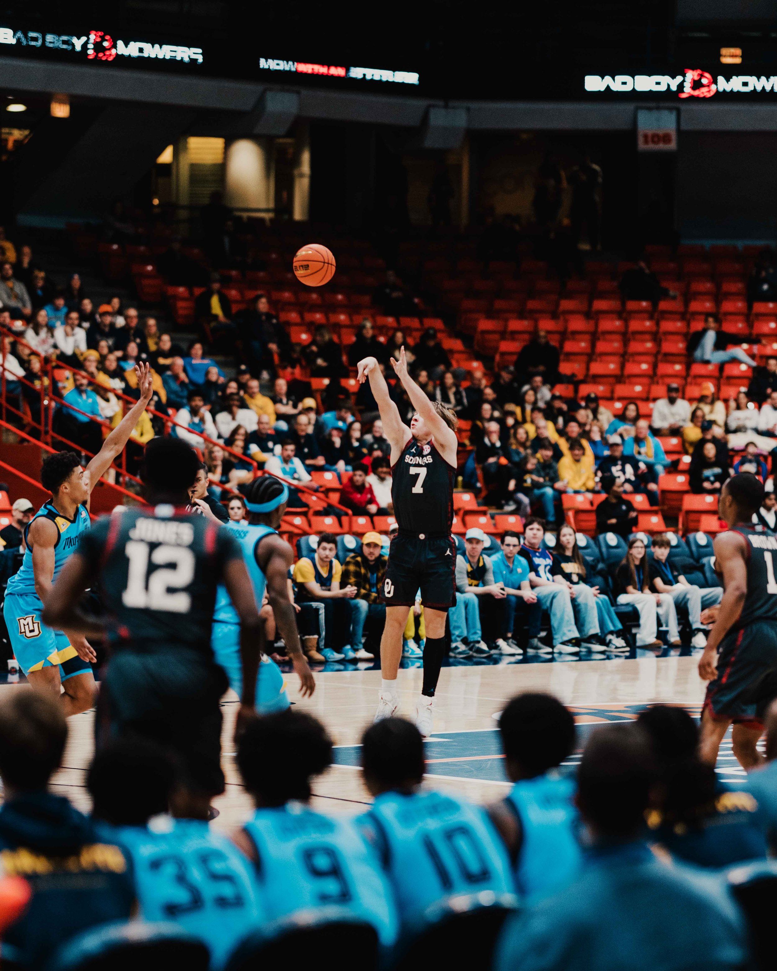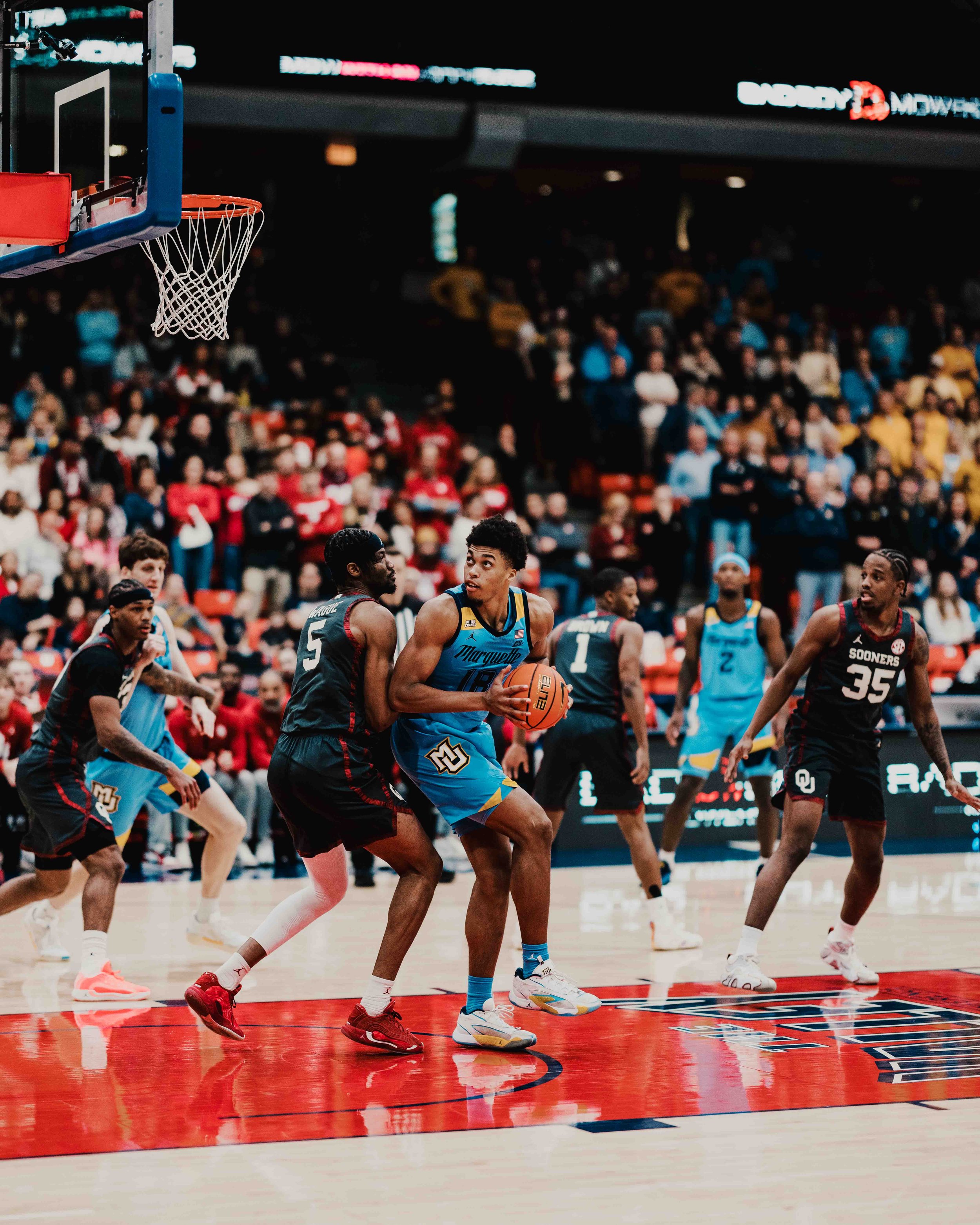 Marquette built a 13-point first-half lead behind an 8–0 run and led 37–33 at the break. Ross came out firing in the second half, helping extend the advantage to double digits at 48–37. But the Sooners flipped the script midway through, capitalizing on a long Marquette scoring drought to go ahead 55–52 with just over seven minutes to play.