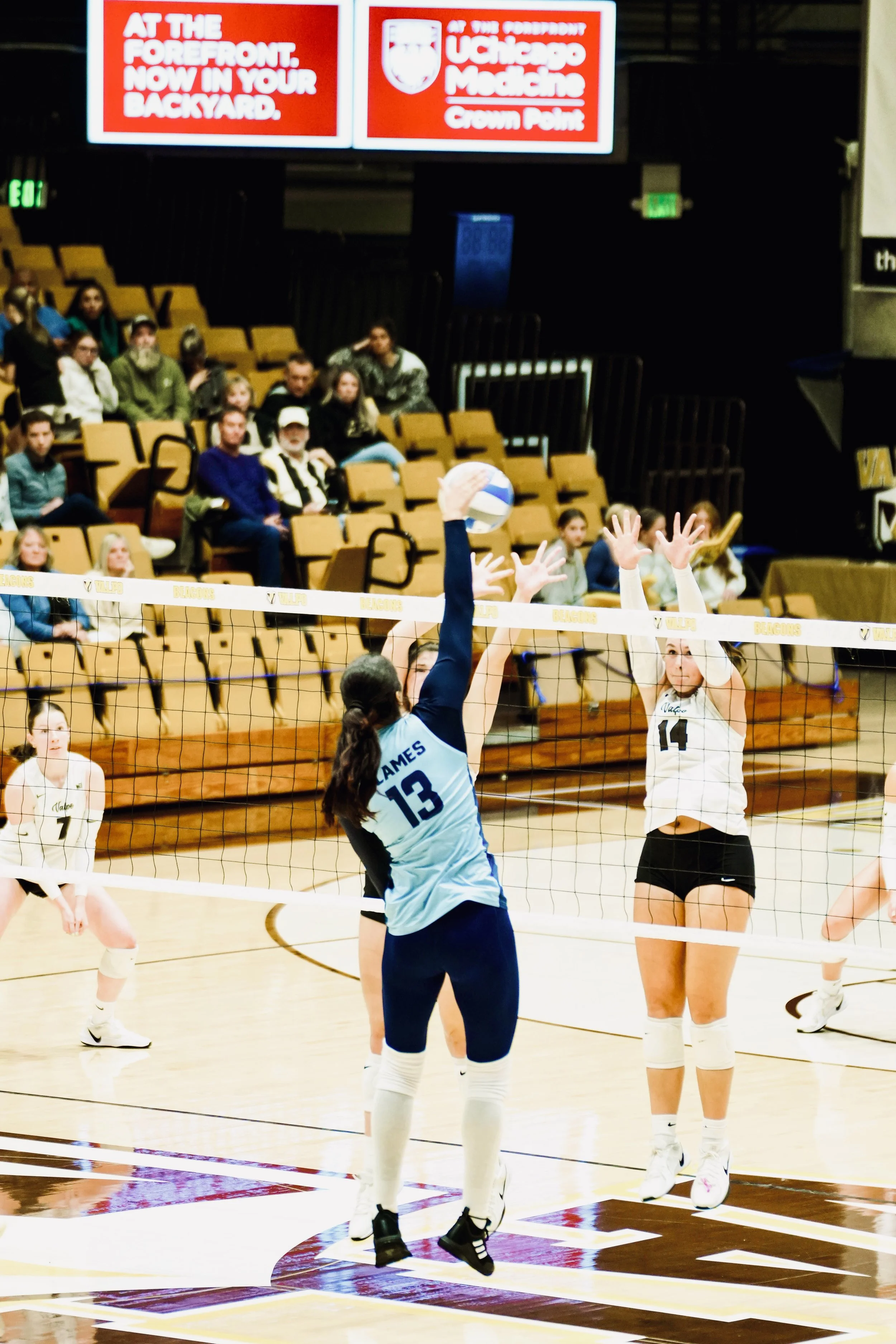 VALPARAISO, Ind. — The energy inside the Athletics-Recreation Center felt heavy Tuesday night. Valparaiso came in riding a six-match win streak, but UIC walked in ready to end it. The Flames did exactly that, grinding out a four-set victory to move to 12-7 overall and 6-3 in the Missouri Valley Conference.